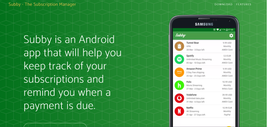 Subby is Bobby's Android equivalent—manual subscription tracking with payment reminders, no bank connection required.