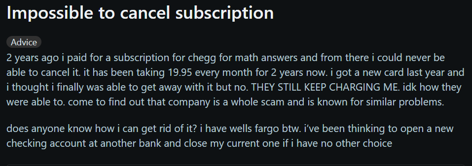 Don't end up like the person stuck paying Chegg for two years, or the one navigating eight menus just to hear "NO" five times before canceling.