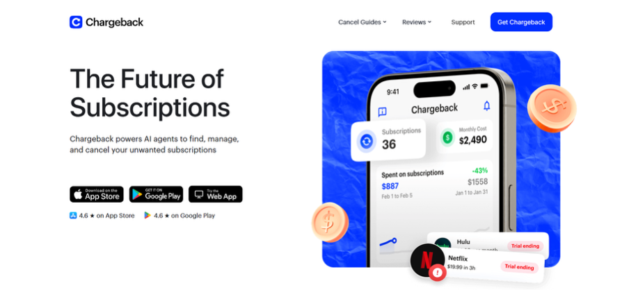 The limitation: Trim can't handle complex cancellations requiring phone calls (gym memberships, cable companies). For those difficult subscription services, you need Chargeback.