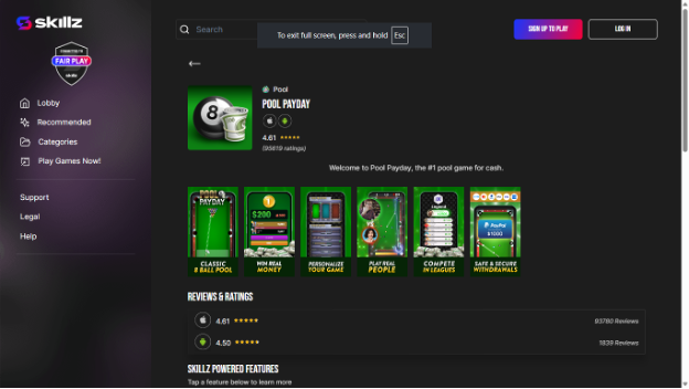 Pool Payday is a competitive pool game where users play head‑to‑head for real money. It supports PayPal and card‑based withdrawals. Pool Payday tends to pay smaller amounts more frequently rather than large single wins.